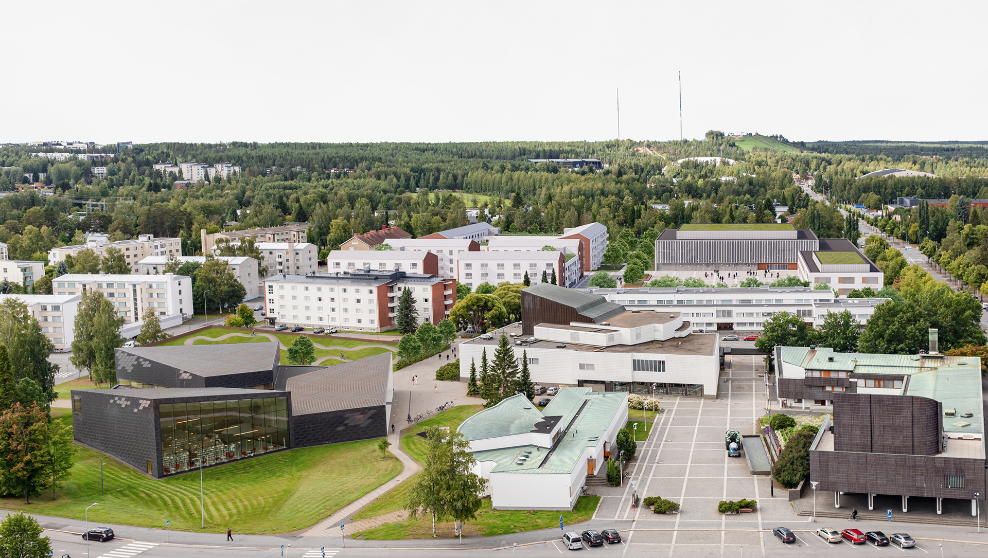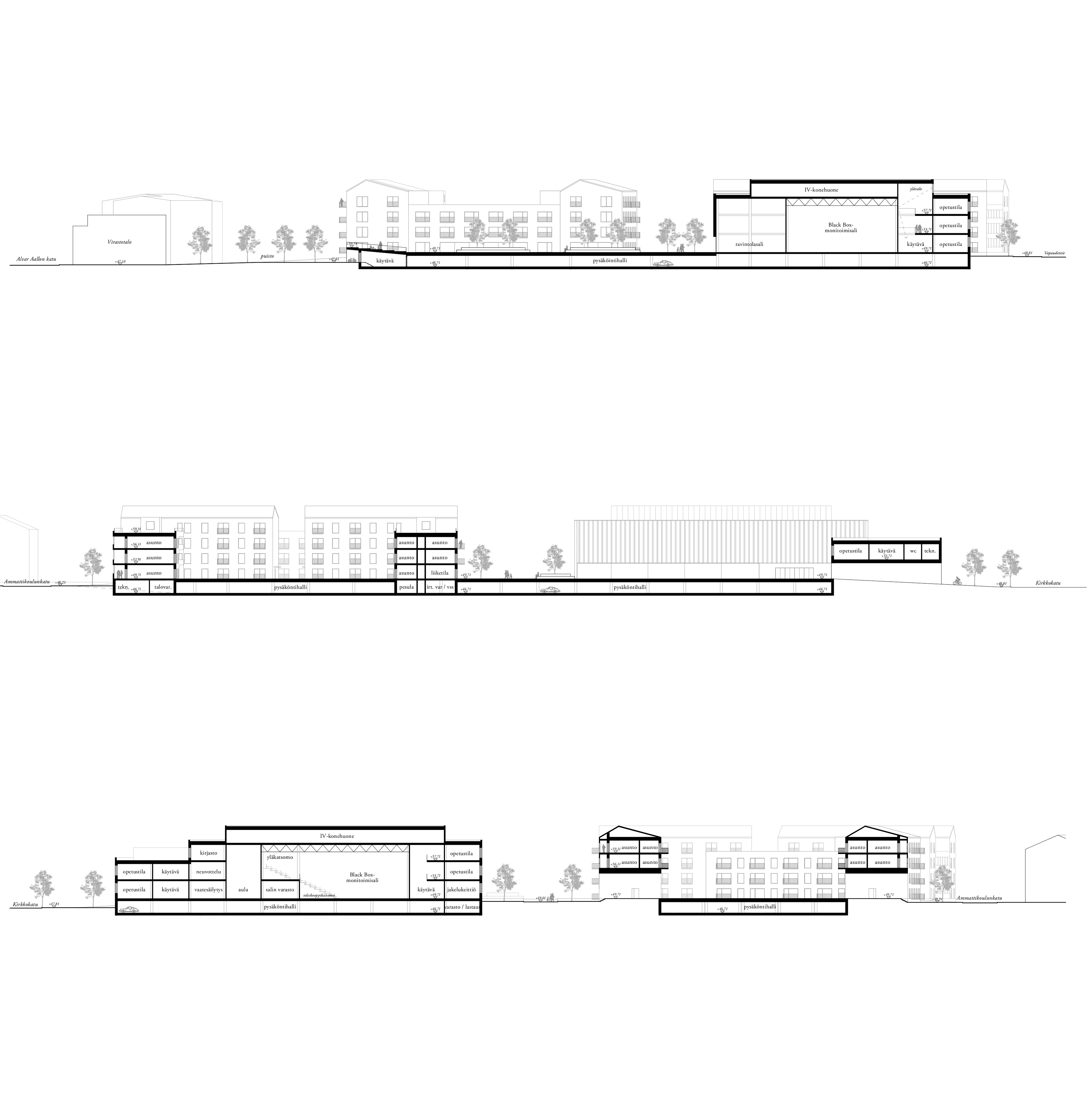 The project introduces a new mixed-use block in Seinäjoki’s city center, adjacent to the Aalto Center. The project continues the development of the civic core by introducing educational, residential, and public functions into a coherent urban structure. It is located on the site of a former vocational school and aims to reconnect the area with the surrounding urban fabric.