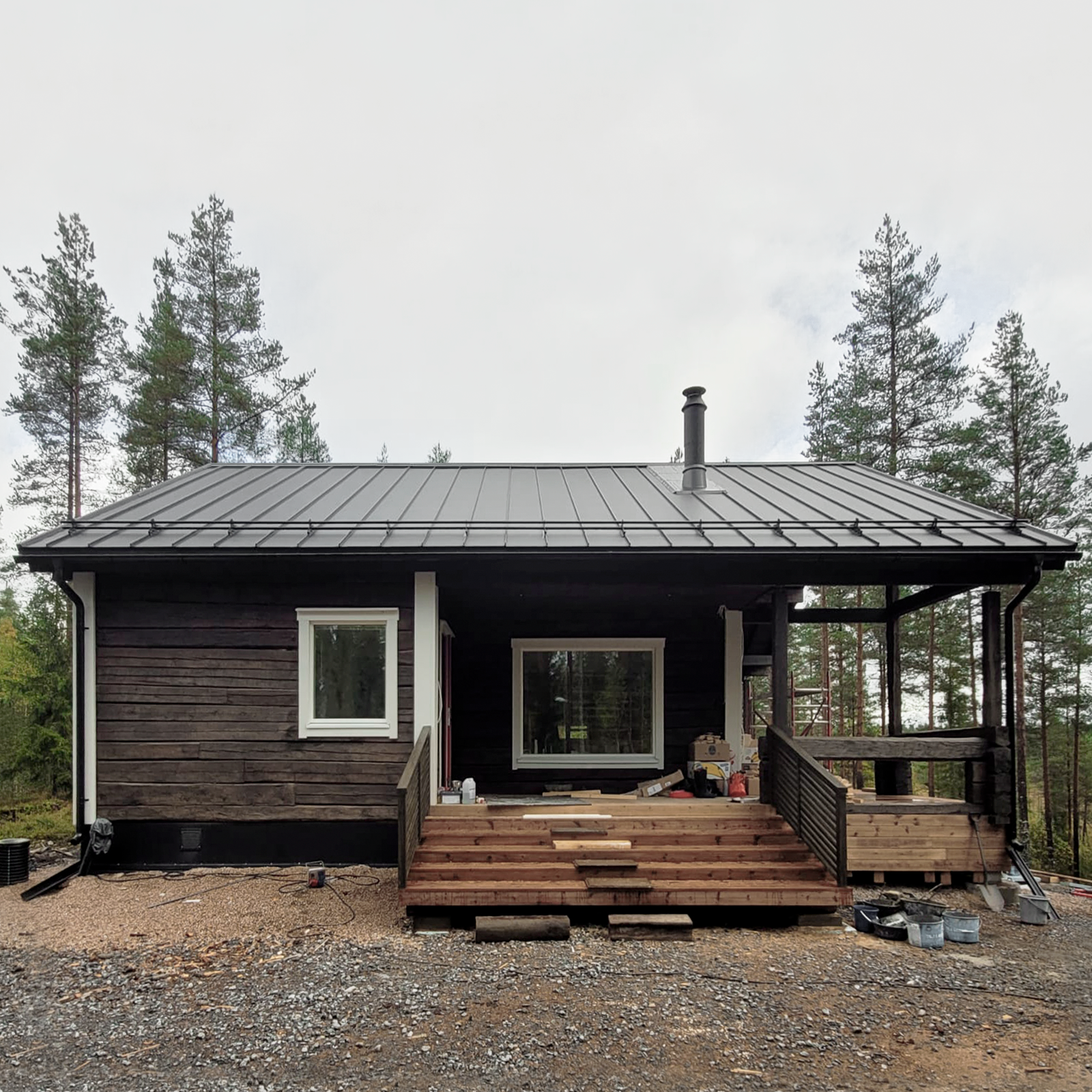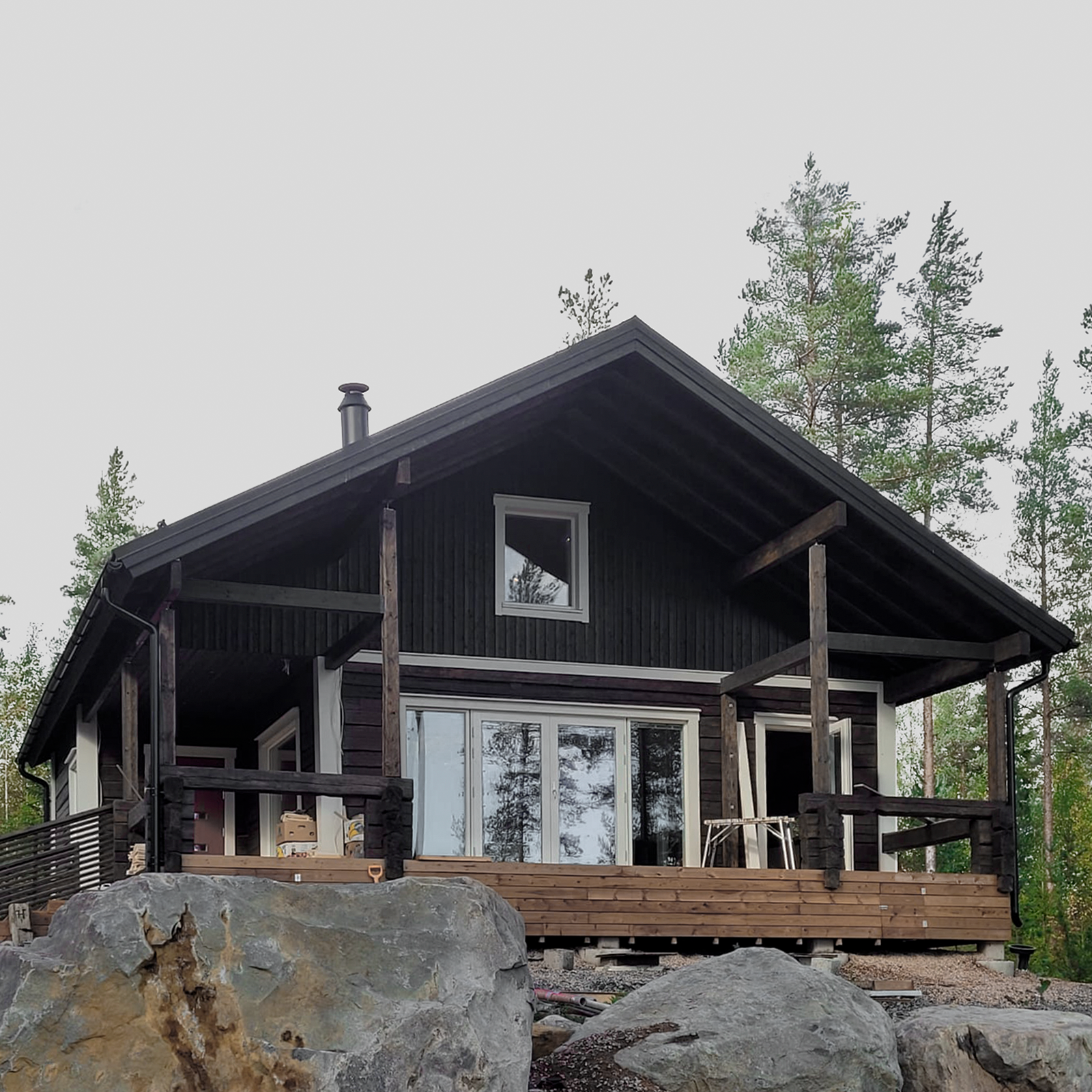 Designed as an all-season holiday home, the cabin provides both comfort and a strong connection to its natural surroundings. The original log frame determined much of the spatial organization — its rhythm and proportions guided the layout, resulting in a home that feels both rooted in tradition and attuned to modern needs.