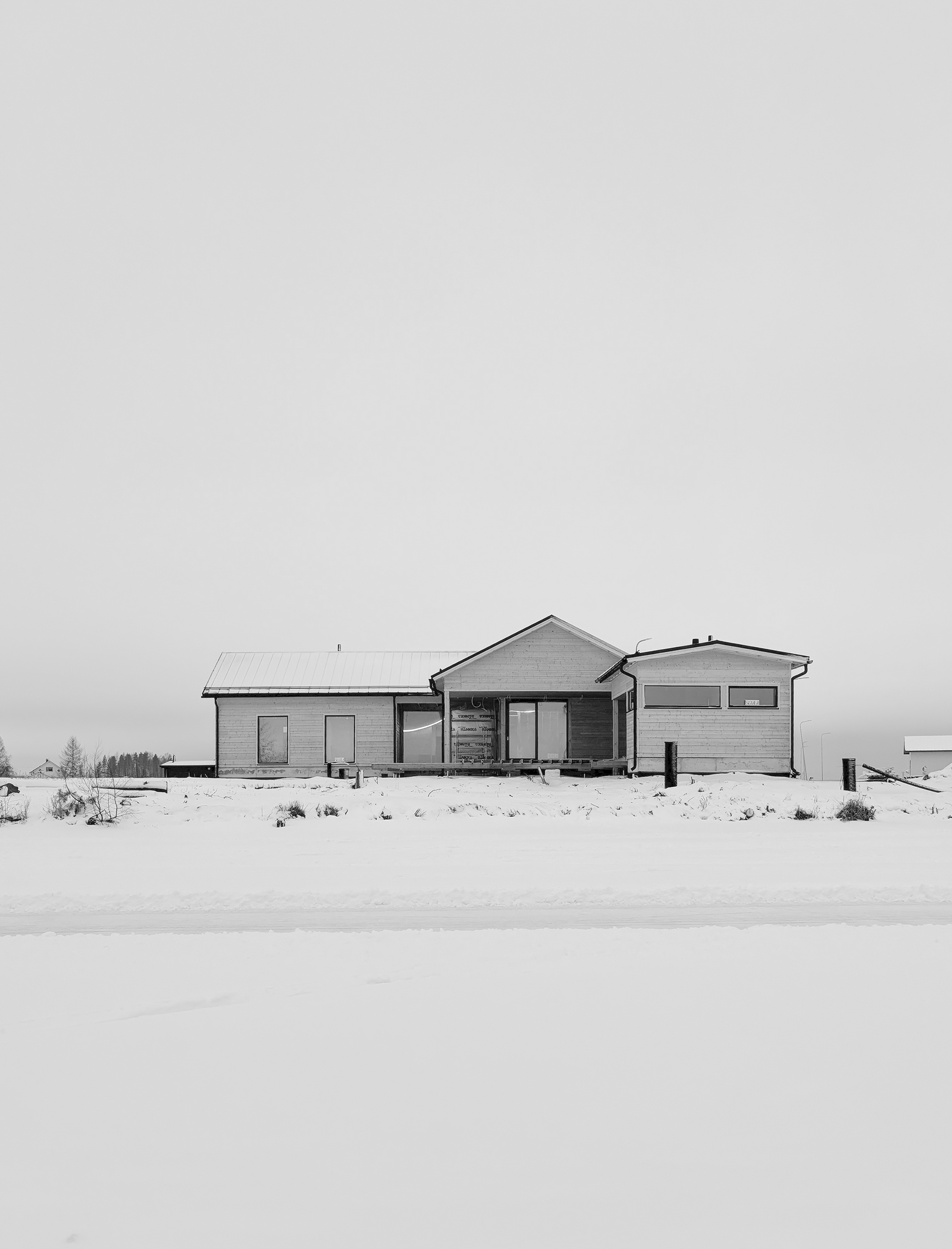 House Miekka is a single-family home located on a riverfront site within the open landscape of Southern Ostrobothnia. The log-frame building is positioned to maximize views toward the river while forming a sheltered inner courtyard that provides privacy and protection from the prevailing winds.