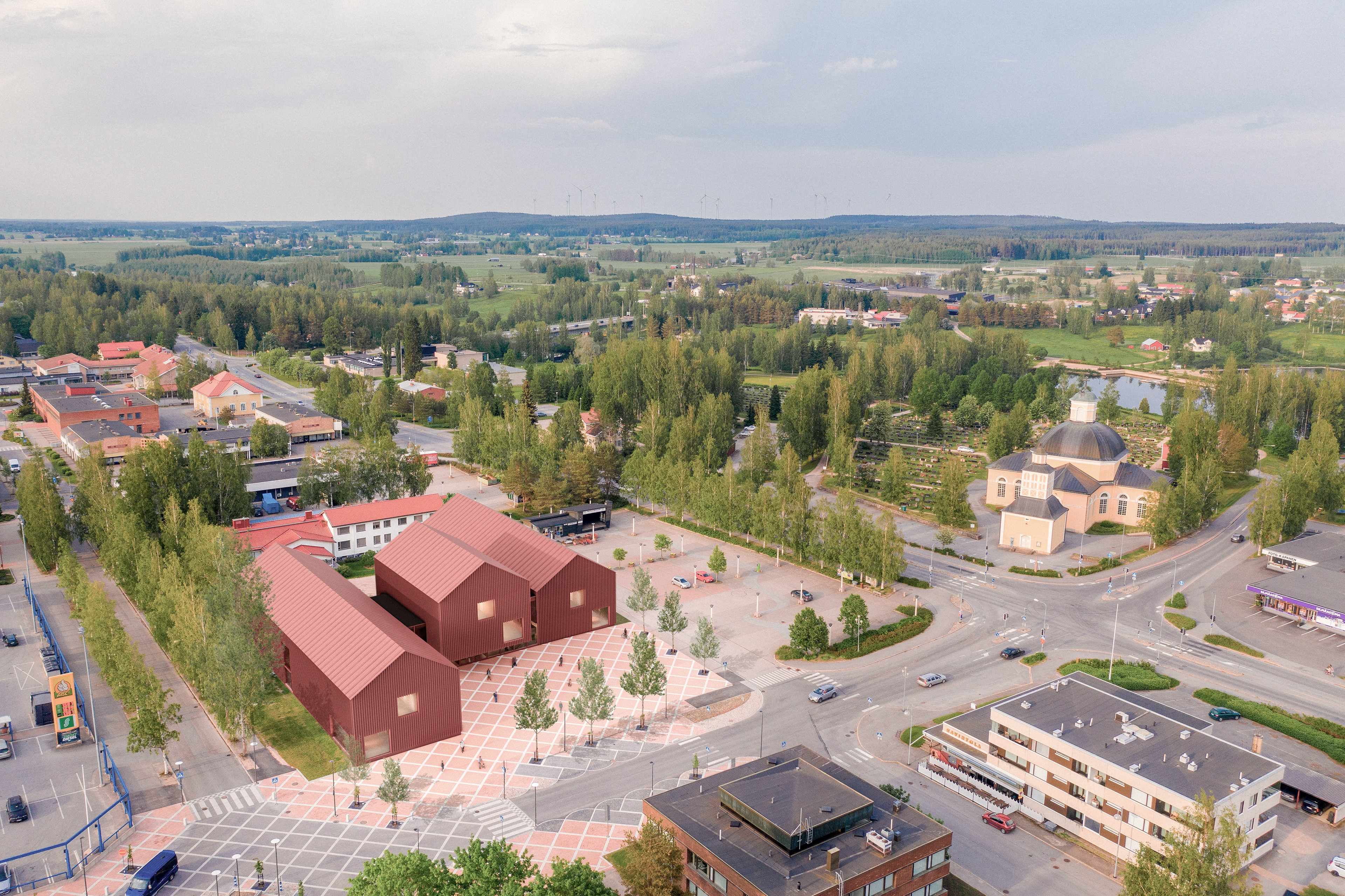 The proposal envisions a new Kurikka City Hall that is deeply rooted in its local context. The building integrates naturally into the existing urban fabric, respecting the scale and character of its surroundings while creating a building with strong identity.