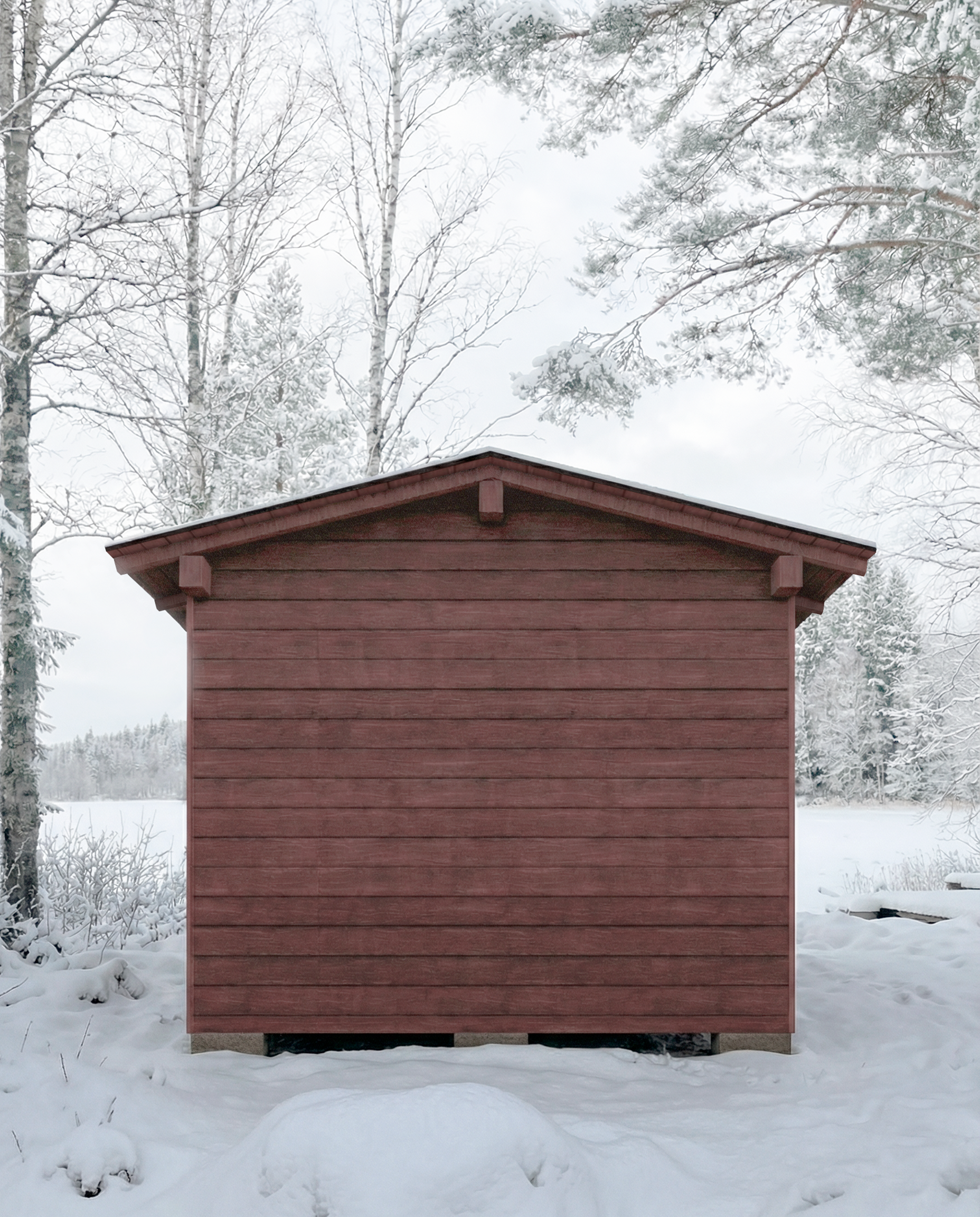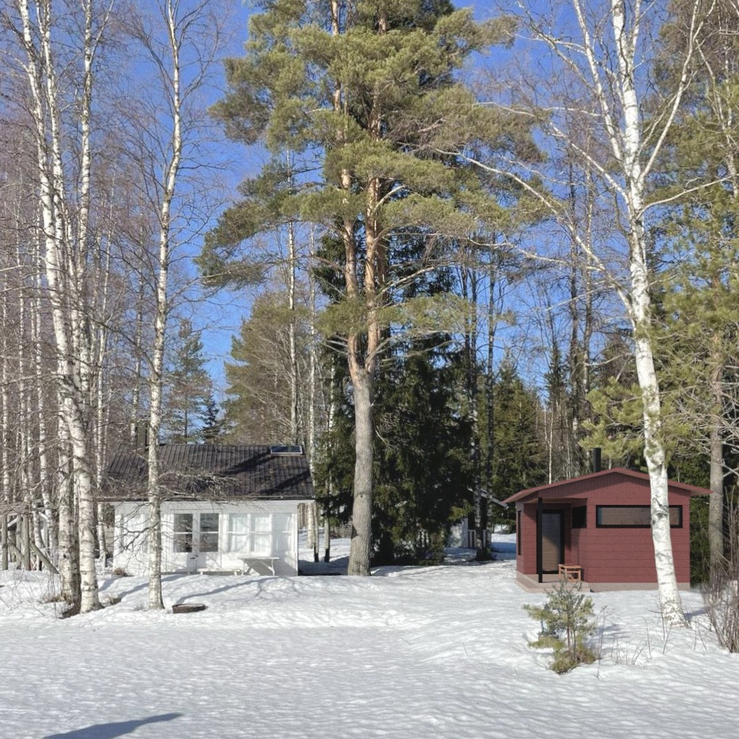 The layout follows a clear and functional logic, consisting of two simple volumes: the guestroom and the sauna. This dual-frame structure allows efficient construction and creates a calm, well-proportioned interior sequence. Deliberate openings frame views toward the beautiful landscape, allowing natural light and the warmth of wood to define the spatial character.